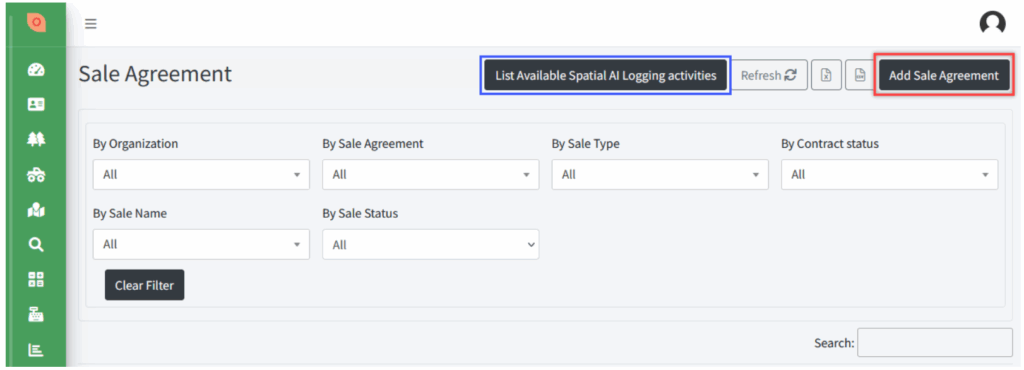 Step 3: Next, click “Add Sale Agreement” in the upper right corner (in red).