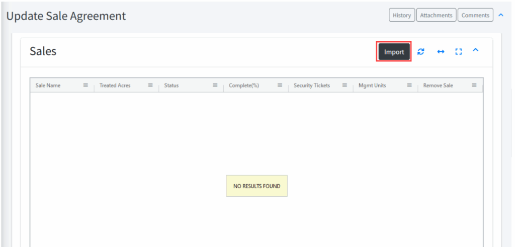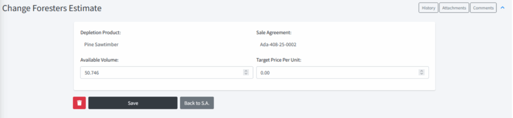 - On the “Update Sale Agreement” page, click Foresters Estimate directly above the “Sales Table”.
