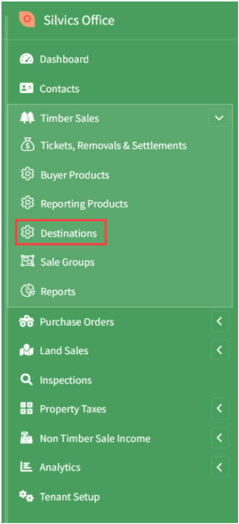 - The forester needs to select all possible delivery Destinations for the corresponding Sale Agreement.